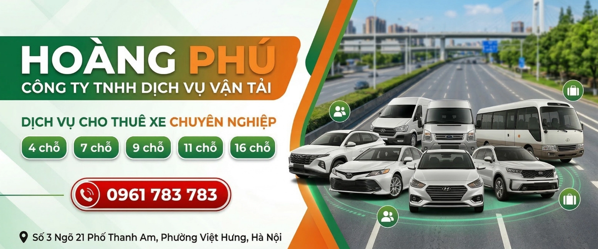 Trong nhu cầu di chuyển ngày càng cao hiện nay, việc tìm kiếm một đơn vị cho thuê xe uy tín, an toàn và chuyên nghiệp tại Hà Nội là điều rất quan trọng. Hoàng Phú Transport tự hào là đơn vị chuyên cung cấp dịch vụ cho thuê xe du lịch và xe đi tỉnh từ 4 đến 16 chỗ, đáp ứng đa dạng nhu cầu của cá nhân, gia đình, doanh nghiệp và khách du lịch.